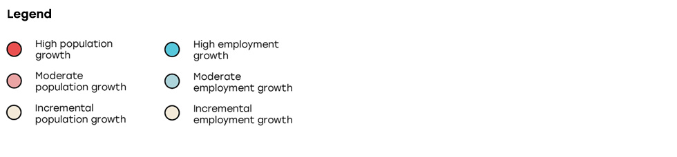 The patterns of growth in both population and employment are influenced by many factors. Some of these are under government control, such as policies and investments in infrastructure. Others are driven by external factors, like economic changes, shifts in how people travel, evolving work and lifestyle preferences, and the effects of climate change. In recent decades, these factors have changed significantly. Technological advances and shifts in society have transformed urban areas over time, and the COVID-19 pandemic has further disrupted and intensified these trends.